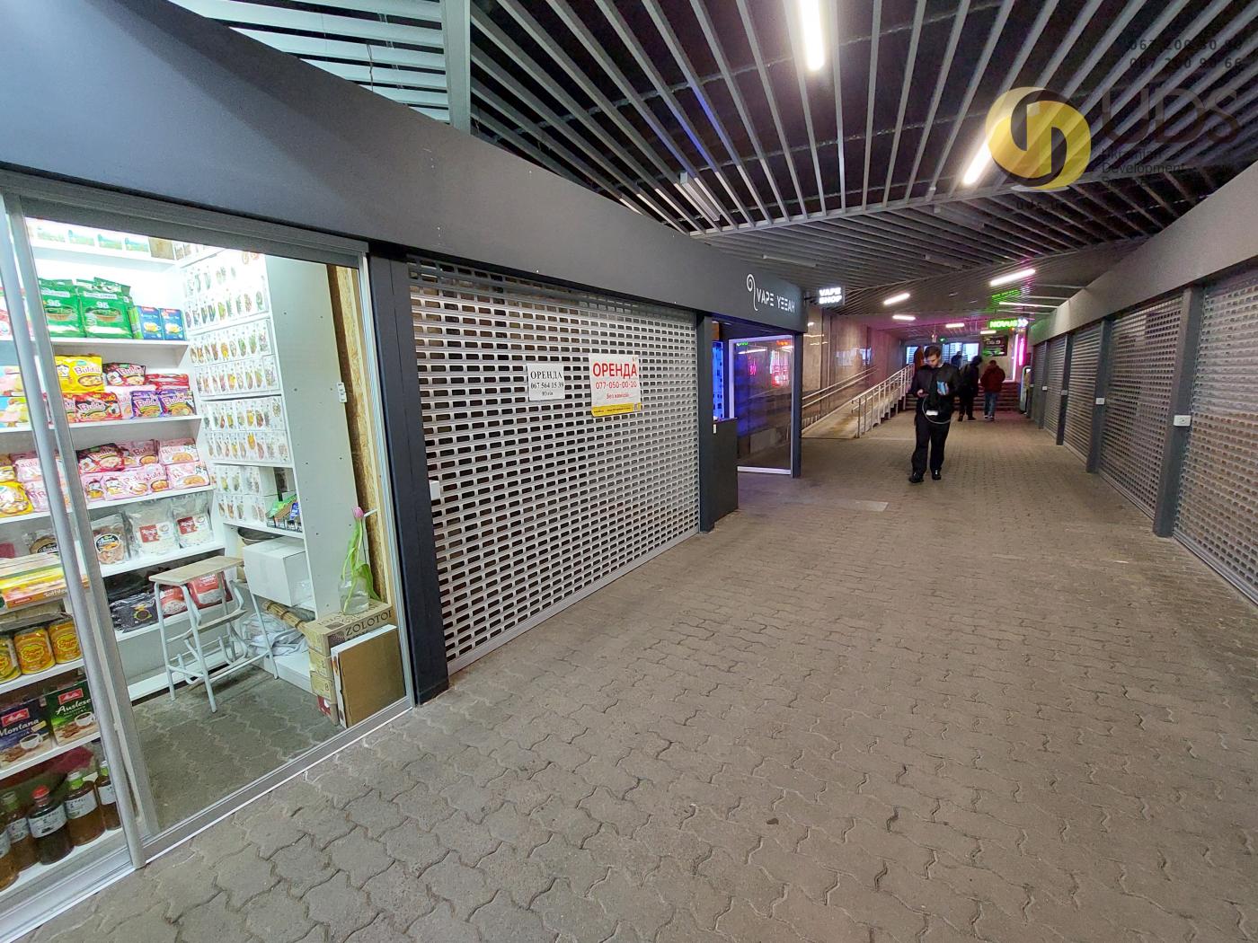 У межах підземного переходу розміщено п’ять окремих ролетів, кожен площею 4,5 м² із габаритами 3 × 1,5 м. Такий формат дозволяє обрати компактну, але максимально ефективну торгову площу, яка ідеально підходить для малого бізнесу. Ролети мають чітку видимість для пішохідного потоку, що проходить безпосередньо повз торгові точки, завдяки чому бізнес постійно перебуває в полі зору потенційних клієнтів.