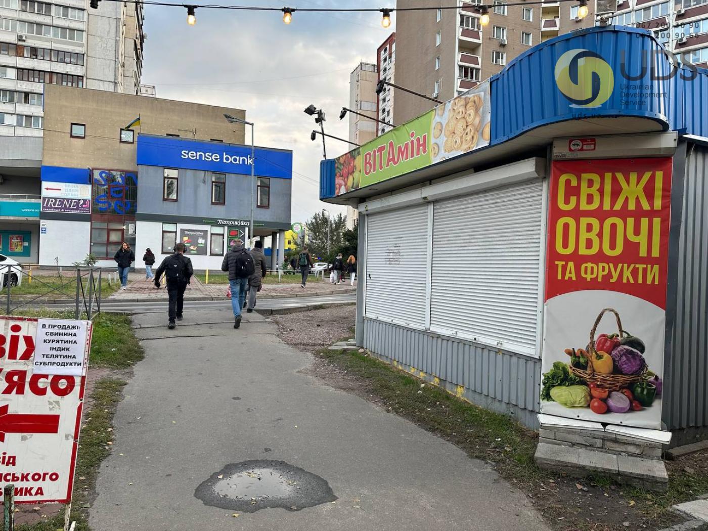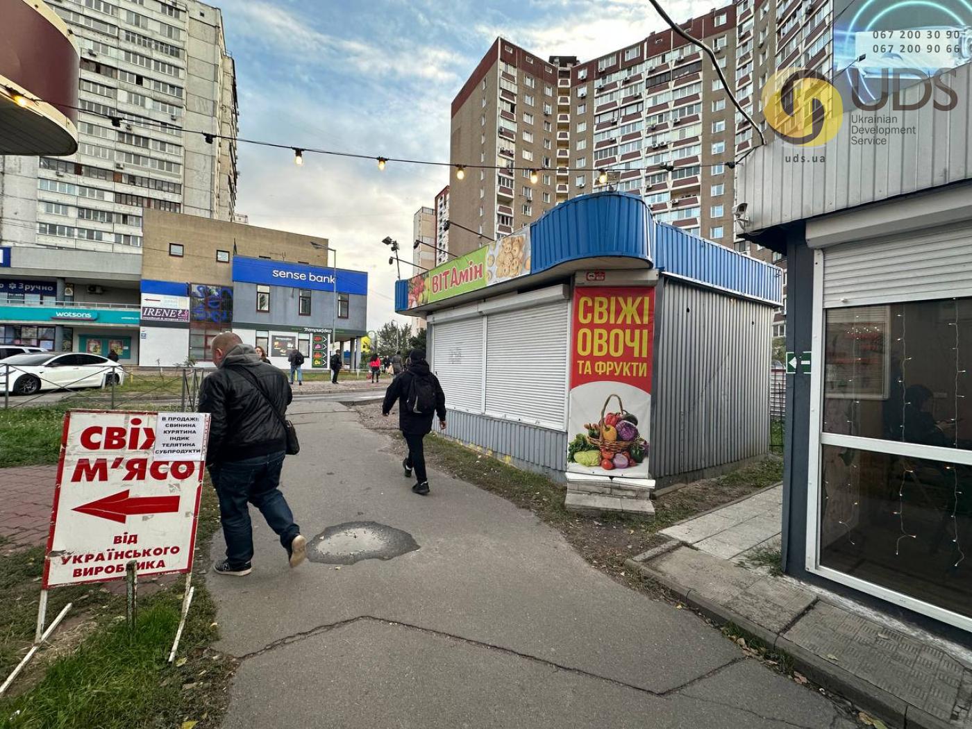 У безпосередній близькості працюють магазини сирів, товарів для дому, квітковий магазин, кав’ярня, м’ясний магазин та інші об’єкти, що формують постійний потік клієнтів. До станції метро «Харківська» лише 4 хвилини пішки, що значно підвищує привабливість локації для ведення бізнесу.