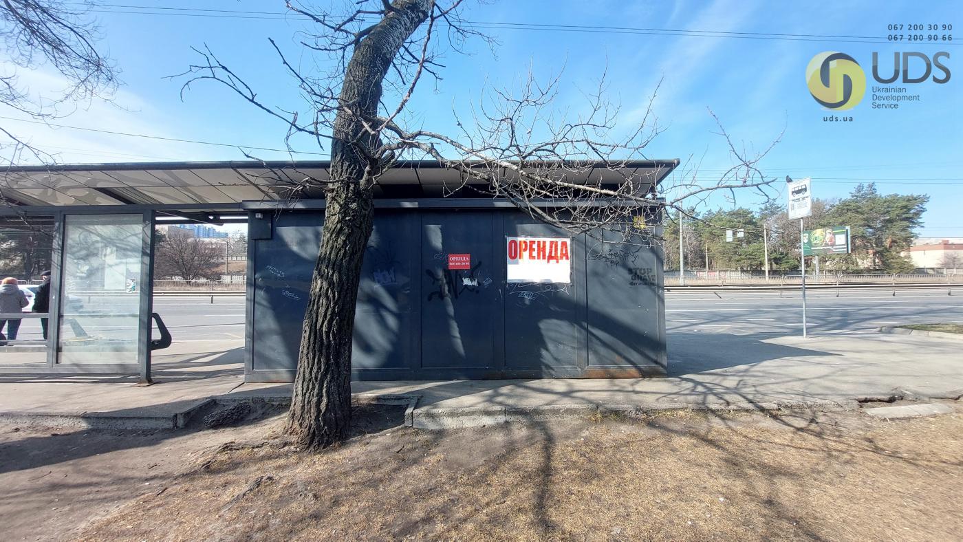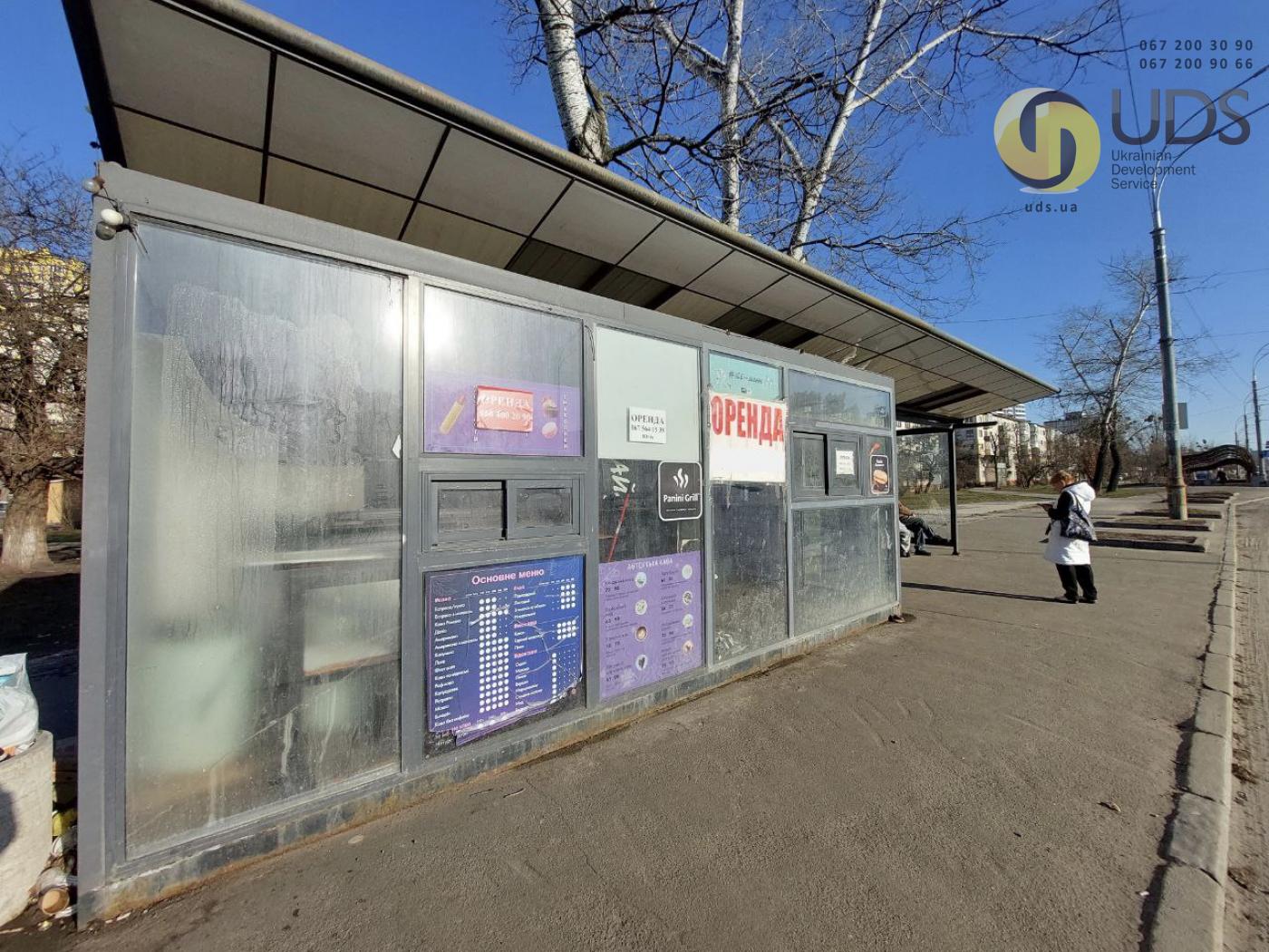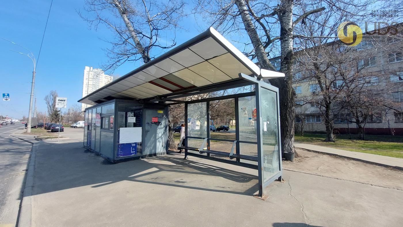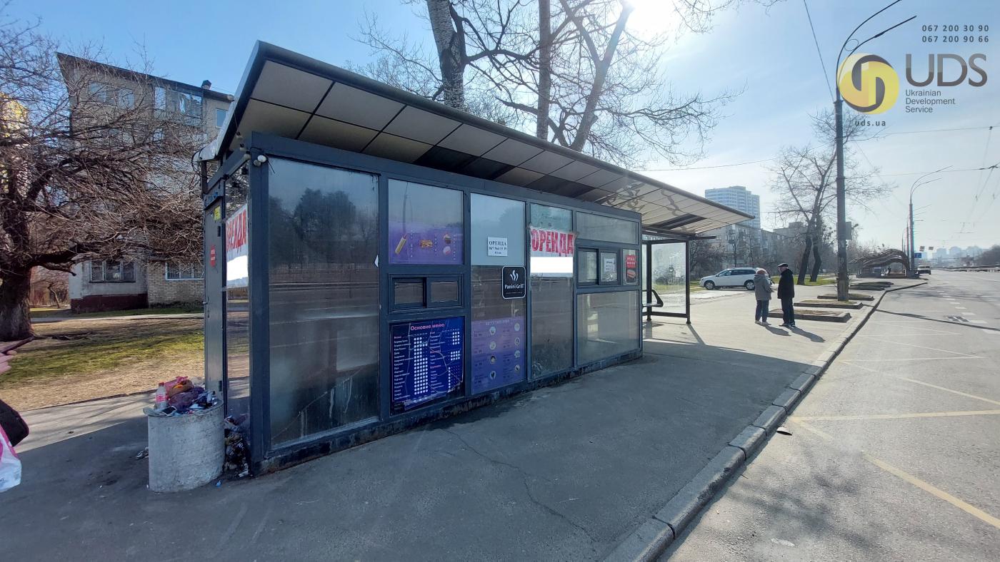Зупинковий комплекс встановлено відповідно до офіційної інвестиційної програми КМДА. Конструкція виконана з якісних, довговічних матеріалів та включає торговий павільйон і окрему зону очікування для пасажирів громадського транспорту. Великі вітринні вікна забезпечують хорошу оглядовість об’єкта з проїжджої частини та пішохідних маршрутів, що позитивно впливає на впізнаваність бізнесу та імпульсні покупки.
