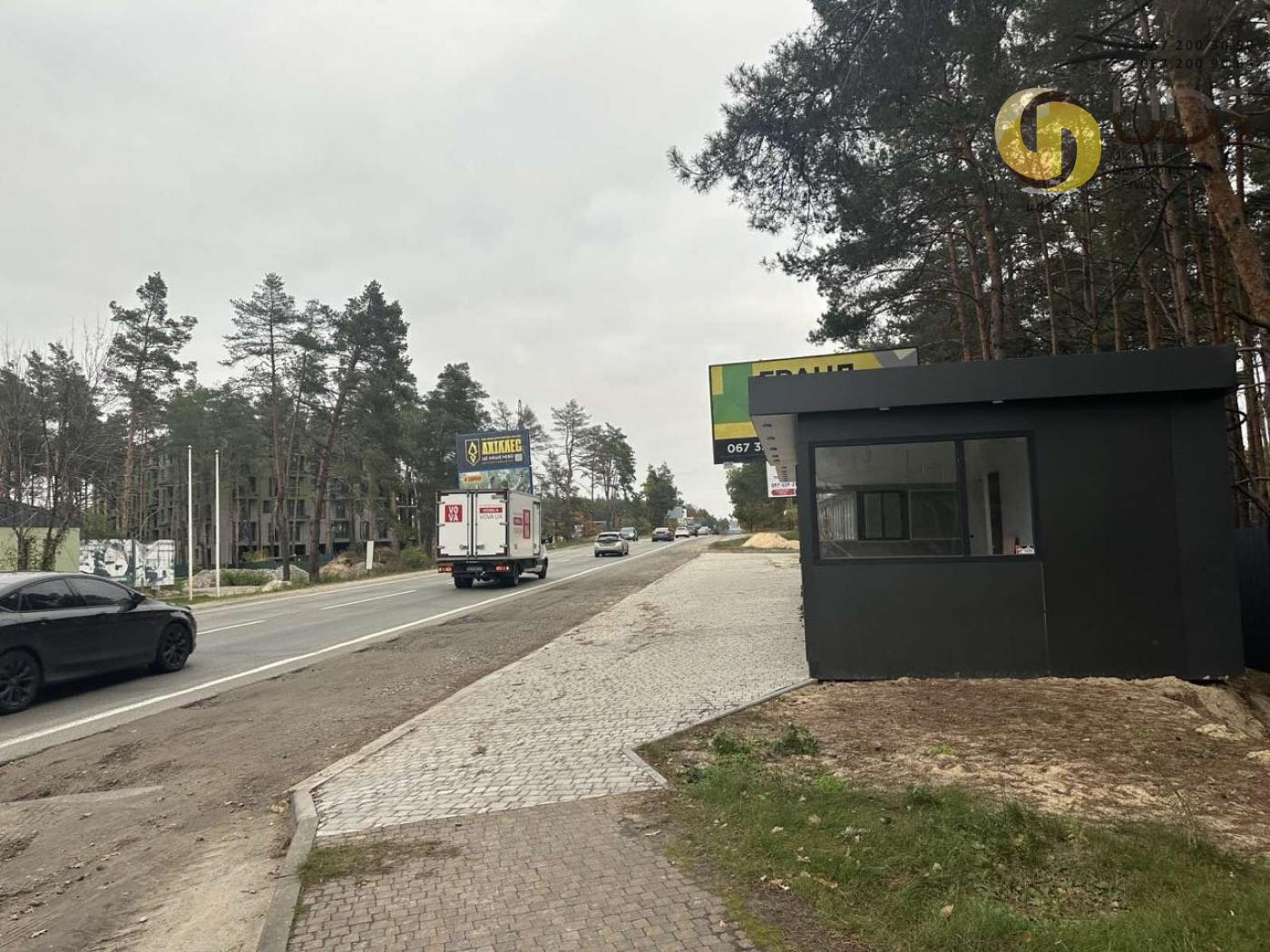 Пропонується в оренду торговий павільйон у смт Гостомель за адресою вул. Прорізна (навпроти вул. Мисливська, 5). Об’єкт виконаний у сучасному форматі МАФ та розташований у вигідній локації безпосередньо біля дороги, що забезпечує хорошу видимість і постійний потік потенційних клієнтів.