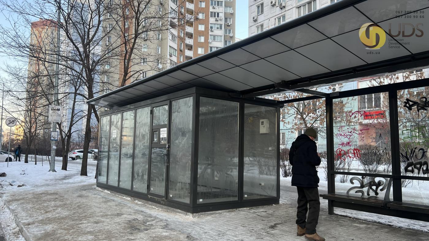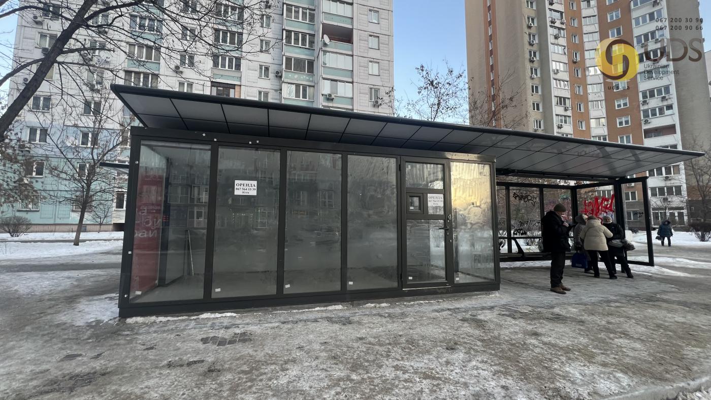 Зупинковий комплекс встановлено відповідно до офіційної інвестиційної програми КМДА, що гарантує легальність розміщення, сучасний формат конструкції та відповідність міським стандартам. Будівля виконана з якісних матеріалів, має охайний архітектурний вигляд і великі вітринні вікна, які забезпечують відмінну оглядовість торгової точки. Конструкцією передбачено окремий павільйон для торгівлі та зону очікування для пасажирів, що створює природну концентрацію людей безпосередньо поруч із приміщенням.